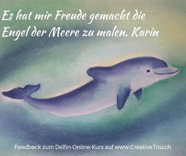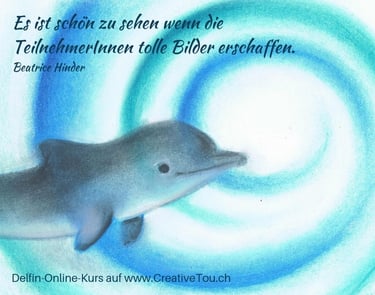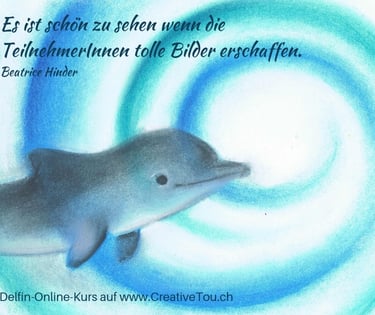 Du malst in deinem Tempo und kannst die Videos jederzeit nutzen – so entstehen nach und nach deine eigenen Delfinbilder.